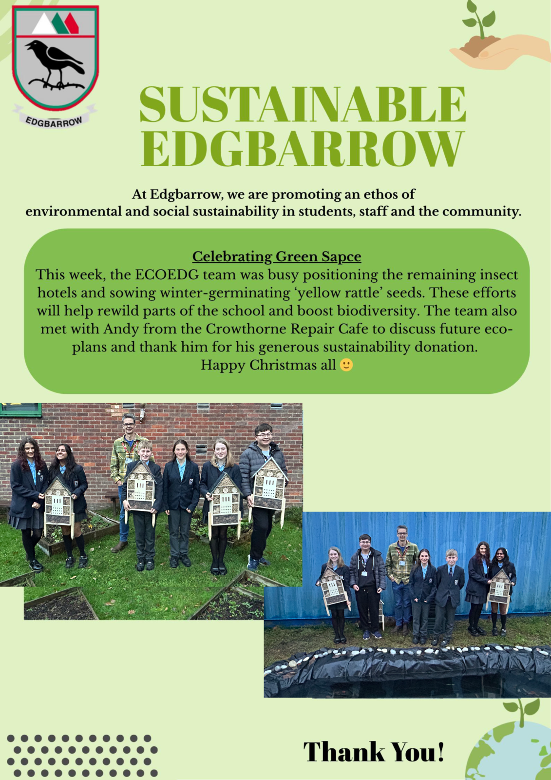 If your son or daughter is interested in joining these projects, encourage them to attend our sustainability group, which meets every Tuesday after school in H2. By joining, students will actively contribute to improving the school’s environment and gain opportunities to be involved in meaningful sustainability events and initiatives.