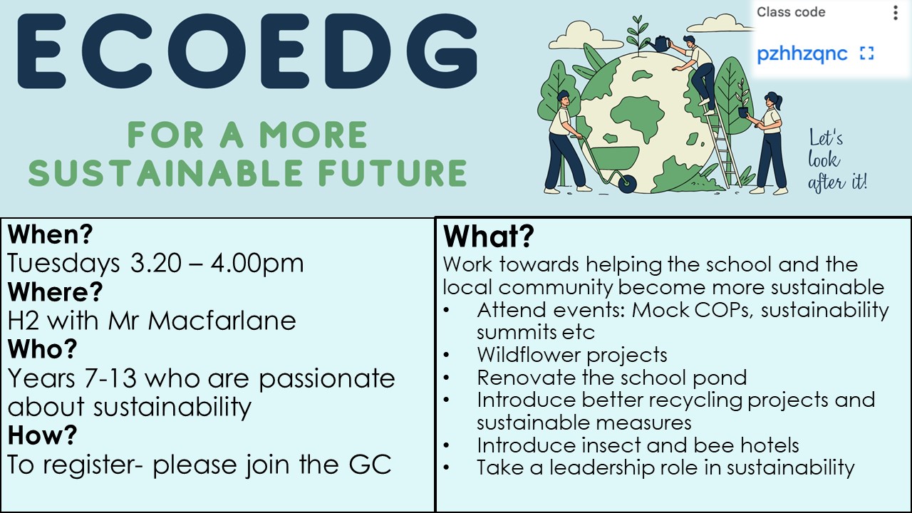 At Edgbarrow, we are committed to nurturing a culture of sustainability that prepares every student to be an environmentally conscious, socially responsible, and ethically minded global citizens